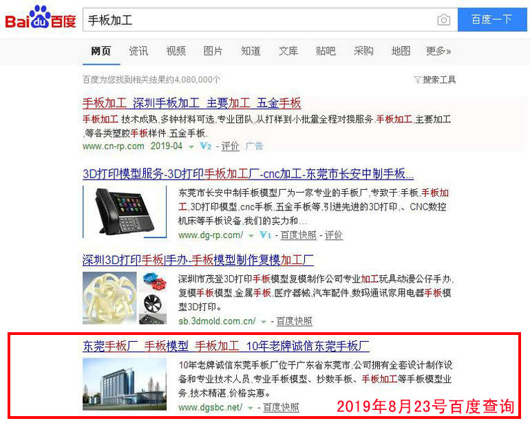手板廠 百度(PC)自然排名第1名,360搜索、搜狗、手機搜索等均也有比較好的排名...