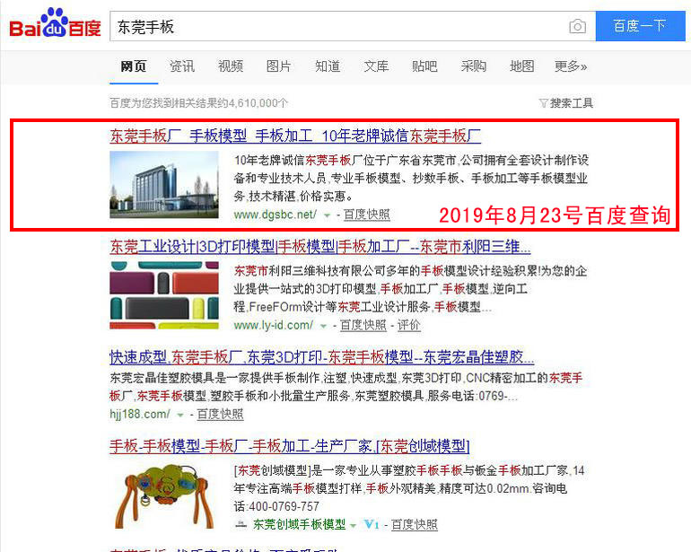 東莞手板廠 : 2019-02-28上線    2019-03-05百度第18名    2019-03-19百度第8名    2019-03-25百度第2名(排名第1名的網(wǎng)站www.dgsbc.net也是我公司管理優(yōu)化的網(wǎng)站)