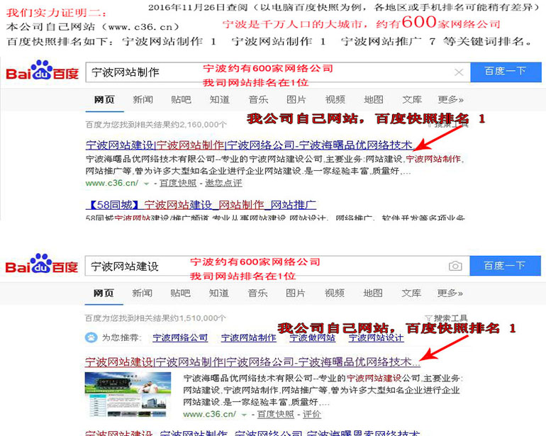 浙江省寧波市是千萬人口的大城市,約有600家網(wǎng)絡公司,競爭異常厲害,“寧波網(wǎng)站建設”“寧波網(wǎng)站制作”這二個關鍵詞,本公司網(wǎng)站多年來基本上百度快照排在第1名(360搜索也多數(shù)排名在1名)...